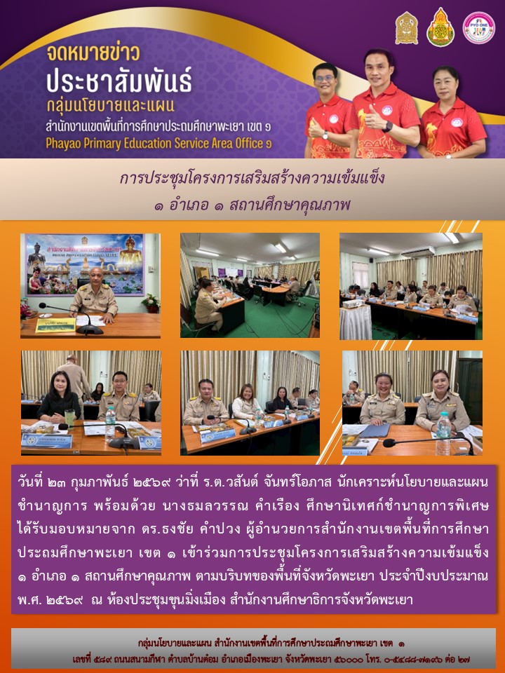 22 SEP การประชุมเตรียมความพร้อมการใช้เครื่องมือแบบสะท้อนคุณภาพสถานศึกษา โครงการ 1 อำเภอ 1 โรงเรียนคุณภาพ