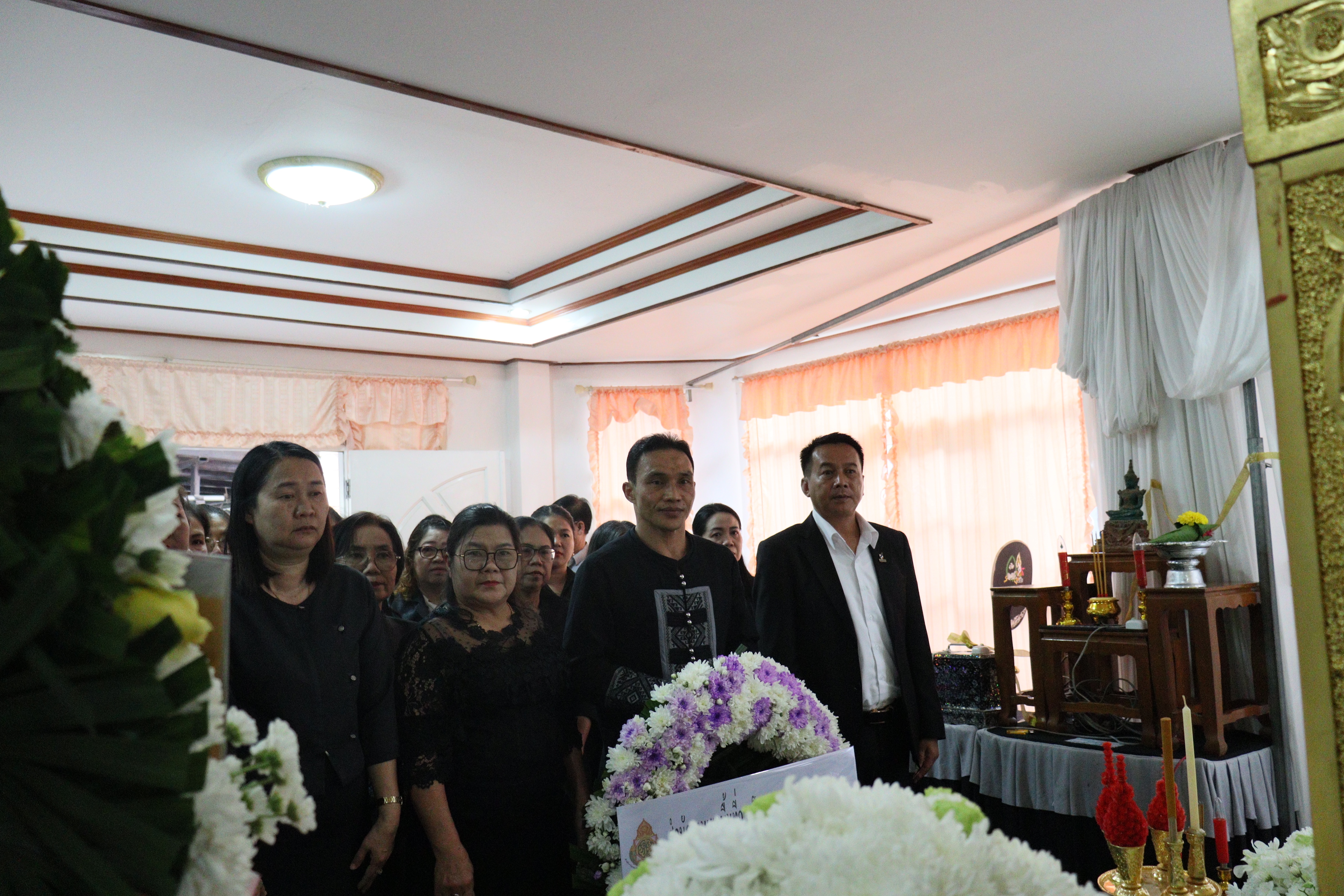 วันพุธ ที่ ๘ ตุลาคม ๒๕๖๘ ดร.ธงชัย คำปวง ผู้อำนวยการสำนักงานเขตพื้นที่การศึกษาประถมศึกษาพะเยา เขต ๑ พร้อมด้วย นายสุภัทร์ เขียนโพธิ์ รองผู้อำนวยการสำนักงานเขตพื้นที่การศึกษาประถมศึกษาพะเยา เขต ๑ , ผู้อำนวยการกลุ่ม/หน่วย และบุคลากรในสังกัดสพป.พะเยา เขต ๑ ร่วมวางหรีดเคารพศพ พ.ต.ท.วีระพล สำราญใจ รอง ผกก.(สอบสวน)ฯ สภ.เมืองพะเยา คู่สมรส นางนริชา สำราญใจ ครูโรงเรียนอนุบาลภูกามยาว ณ บ้านเลขที่ ๑๓๙ หมู่ ๑๐ ซอย ๓๙ (บ้านดอกบัว) ต.ท่าวังทอง อ.เมือง จ.พะเยา