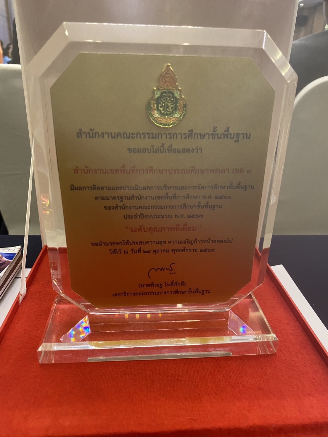 ระหว่างวันที่ ๒๔ – ๒๕ ตุลาคม ๒๕๖๘ ดร.ธงชัย คำปวง ผู้อำนวยการสำนักงานเขตพื้นที่การศึกษาประถมศึกษาพะเยา เขต ๑ เข้าร่วมการประชุมสัมมนาผู้อำนวยการสำนักงานเขตพื้นที่การศึกษาทั่วประเทศครั้งที่ ๒/๒๕๖๘ และรับโล่รางวัลการติดตามและประเมินผลการบริหารและการจัดการศึกษาขั้นพื้นฐาน ตามมาตรฐานสำนักงานเขตพื้นที่การศึกษา พ.ศ. ๒๕๖๘ ของสำนักงานคณะกรรมการการศึกษาขั้นพื้นฐาน ประจำปีงบประมาณ พ.ศ. ๒๕๖๘ “ระดับคุณภาพดีเยี่ยม” โดยมี ศ.ดร. นฤมล ภิญโญสินวัฒน์ รัฐมนตรีว่าการกระทรวงศึกษาธิการ เป็นประธาน เปิดการประชุมฯณ โรงแรมเดอะ คาวาลิ คาซ่า รีสอร์ท จังหวัดพระนครศรีอยุธยา