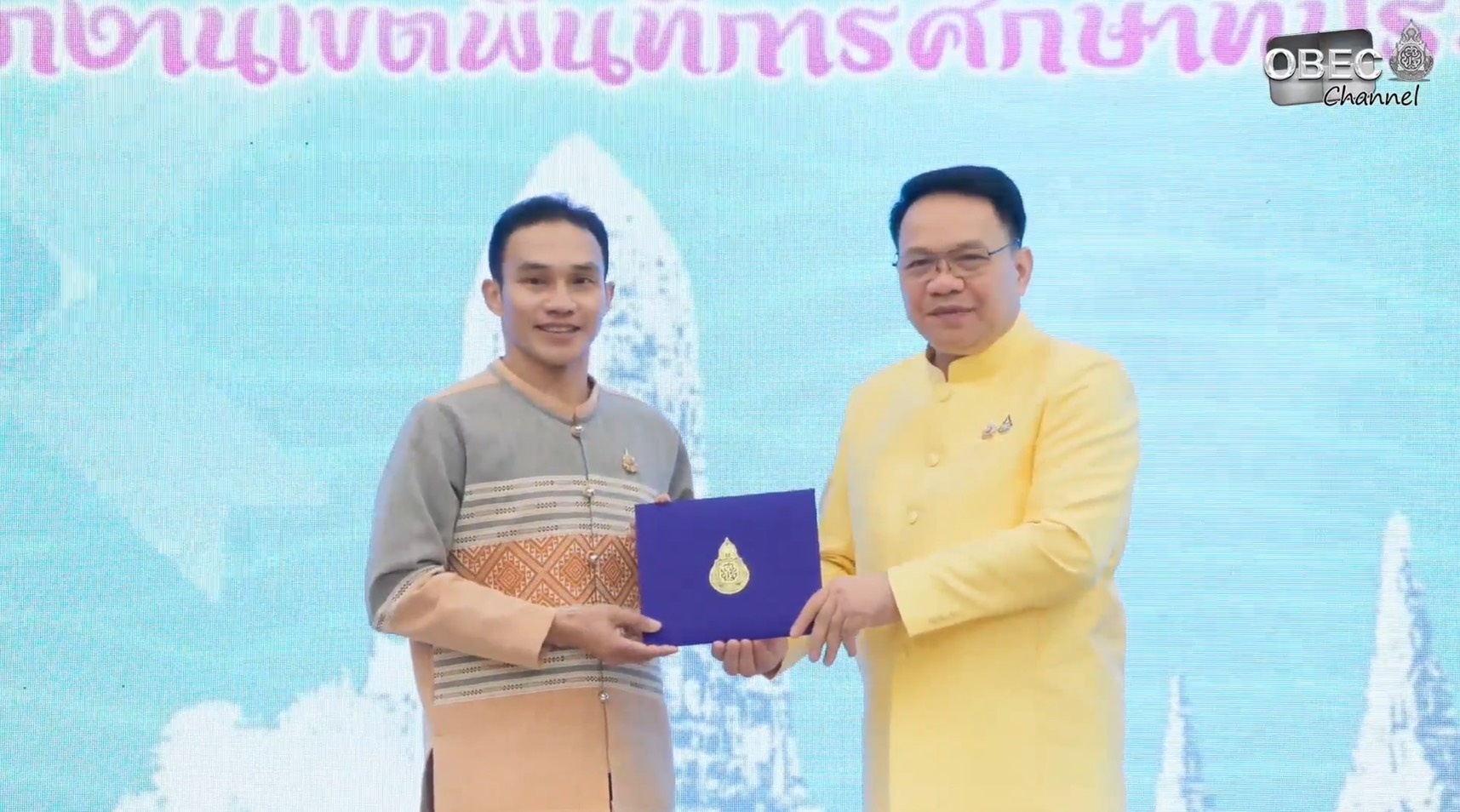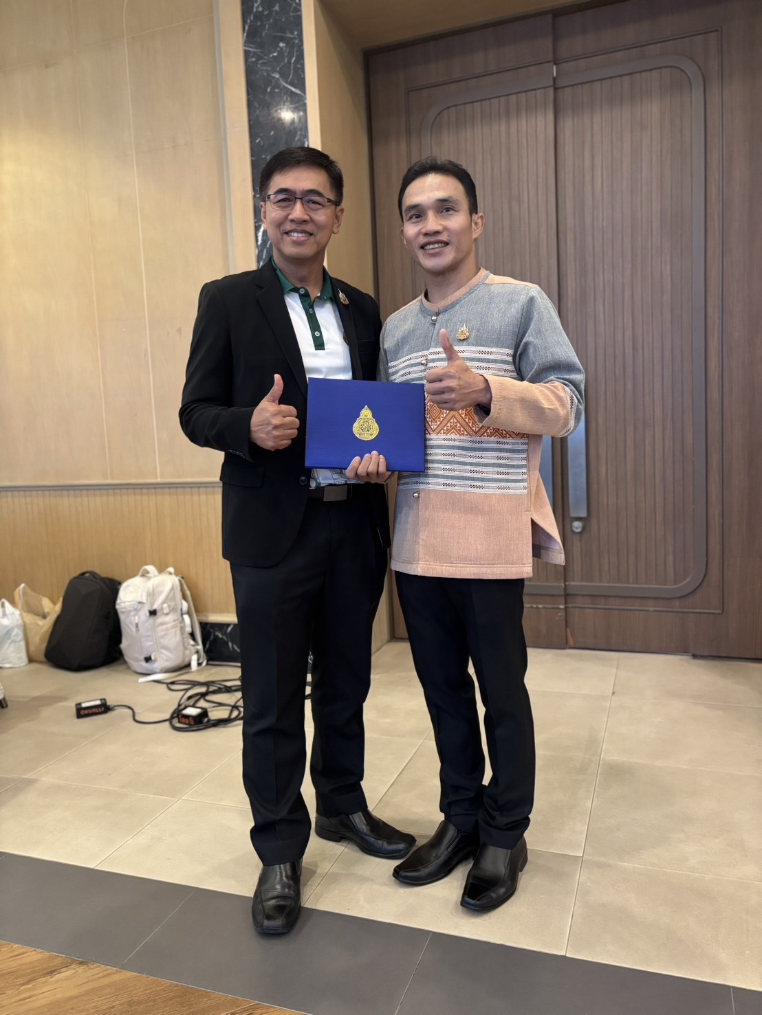 ดร.ธงชัย คำปวง ผู้อำนวยการสำนักงานเขตพื้นที่การศึกษาประถมศึกษาพะเยา เขต ๑ รับโล่รางวัลหน่วยงานที่มีผลการใช้จ่ายงบประมาณ ประจำปีงบประมาณ พ.ศ. ๒๕๖๘ รายจ่ายลงทุนสูงสุด ระดับยอดเยี่ยม มอบโดย นายพิเชฐ โพธิ์ภักดี เลขาธิการคณะกรรมการการศึกษาขั้นพื้นฐาน ณ โรงแรมเดอะ คาวาลิ คาซ่า รีสอร์ท จังหวัดพระนครศรีอยุธยา