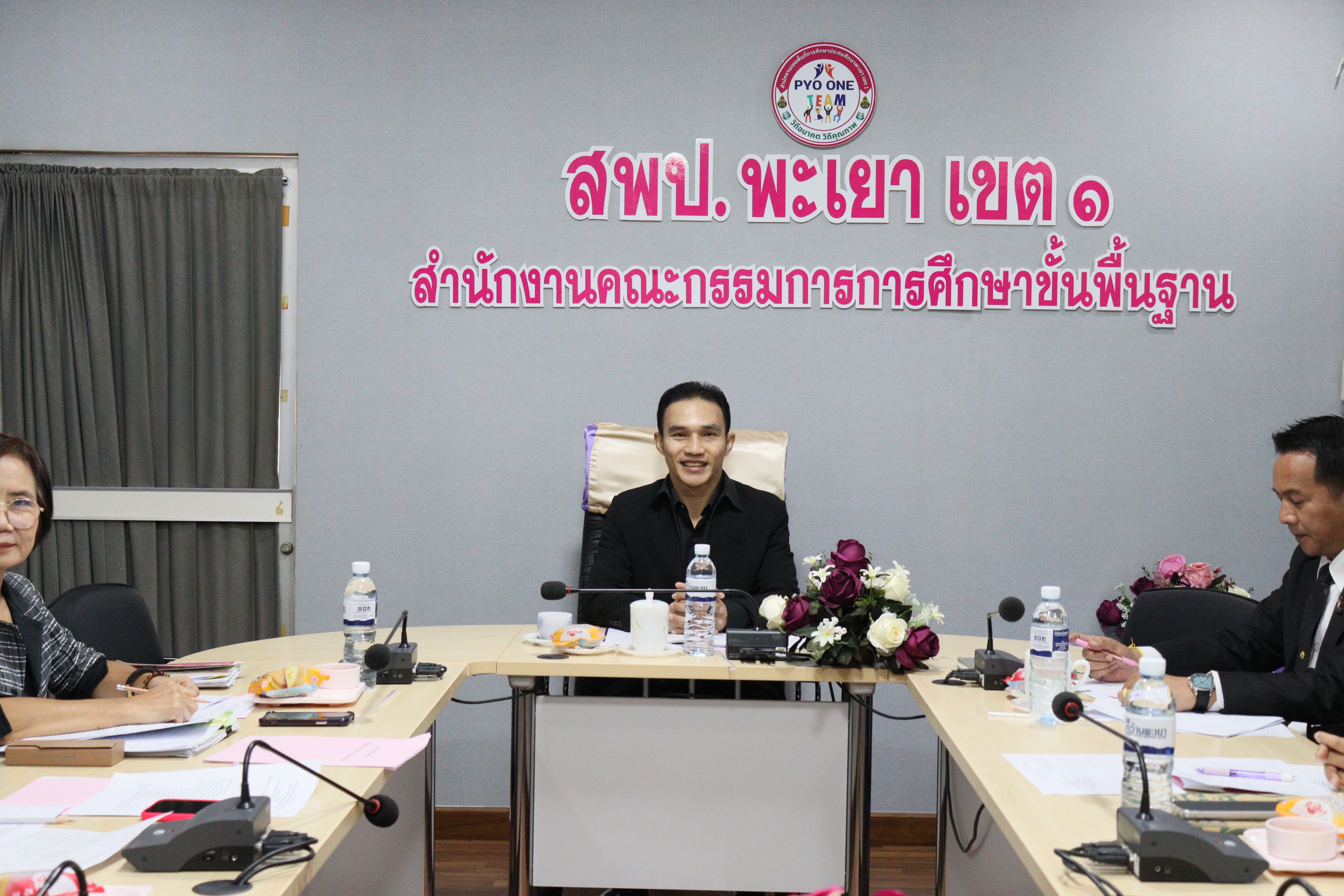 วันพฤหัสบดี ที่ ๓๐ ตุลาคม ๒๕๖๘ ดร.ธงชัย คำปวง ผู้อำนวยการสำนักงานเขตพื้นที่การศึกษาประถมศึกษาพะเยา เขต ๑ เป็นประธานการประชุมคณะกรรมการกลั่นกรองการย้ายพนักงานราชการทั่วไป กรณีปกติ ตำแหน่งครูผู้สอน สังกัดสำนักงานคณะกรรมการการศึกษาขั้นพื้นฐาน ประจำปี พ.ศ. ๒๕๖๘ พร้อมด้วย นายสุภัทร์ เขียนโพธิ์ รองผู้อำนวยการสำนักงานเขตพื้นที่การศึกษาประถมศึกษาพะเยา เขต ๑ , นางบัวลอง หอมยา ผู้อำนวยการกลุ่มบริหารงานบุคคล และคณะกรรมการกลั่นกรองการย้ายฯ ณ ห้องประชุม Conference สำนักงานเขตพื้นที่การศึกษาประถมศึกษาพะเยา เขต ๑