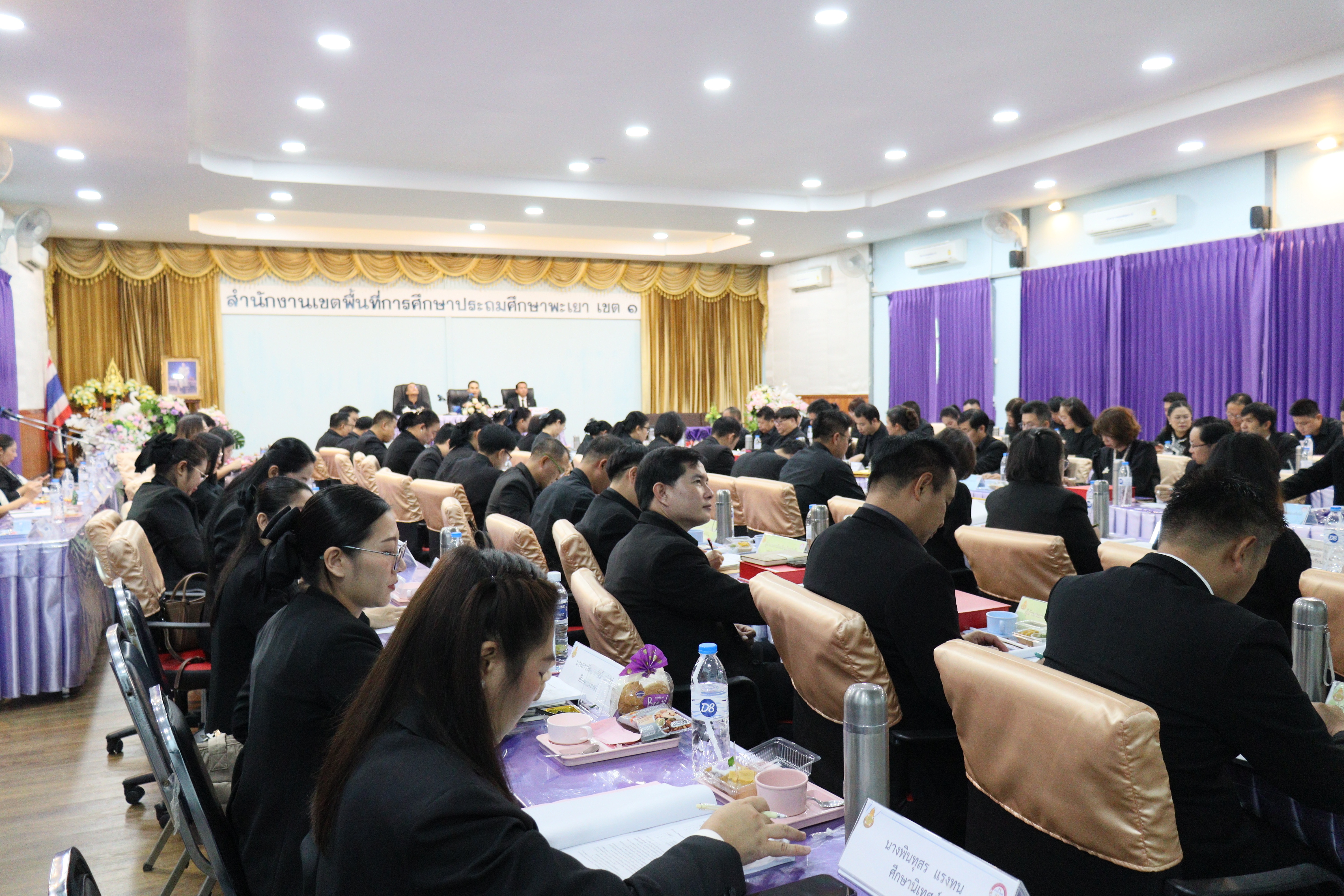 วันศุกร์ ที่ ๓๑ ตุลาคม ๒๕๖๘ ดร.ธงชัย คำปวง ผู้อำนวยการสำนักงานเขตพื้นที่การศึกษาประถมศึกษาพะเยา เขต ๑ เป็นประธานเปิดการประชุมผู้บริหารการศึกษาและผู้บริหารสถานศึกษาสำนักงานเขตพื้นที่การศึกษาประถมศึกษาพะเยา เขต ๑ ครั้งที่ ๒/๒๕๖๘ และลงนามถวายความอาลัยแด่สมเด็จพระนางเจ้าสิริกิติ์ พระบรมราชินีนาถ พระบรมราชชนนีพันปีหลวง พร้อมด้วย นายสุวัฒน์ โยปัญญา , นายสุภัทร์ เขียนโพธิ์ รองผู้อำนวยการสำนักงานเขตพื้นที่การศึกษาประถมศึกษาพะเยา เขต ๑ , ผู้อำนวยการกลุ่ม/หน่วย และผู้อำนวยการสถานศึกษาในสังกัด สพป.พะเยา เขต ๑ ณ หอประชุมประถมนุสรณ์ สำนักงานเขตพื้นที่การศึกษาประถมศึกษาพะเยา เขต ๑