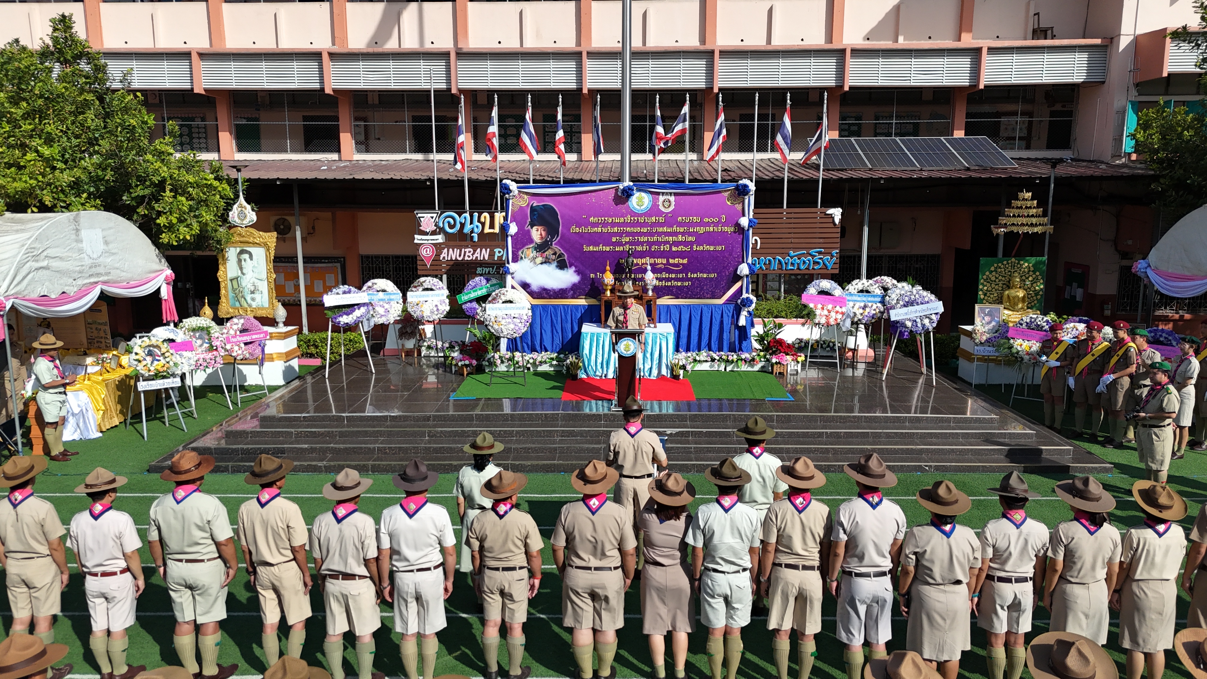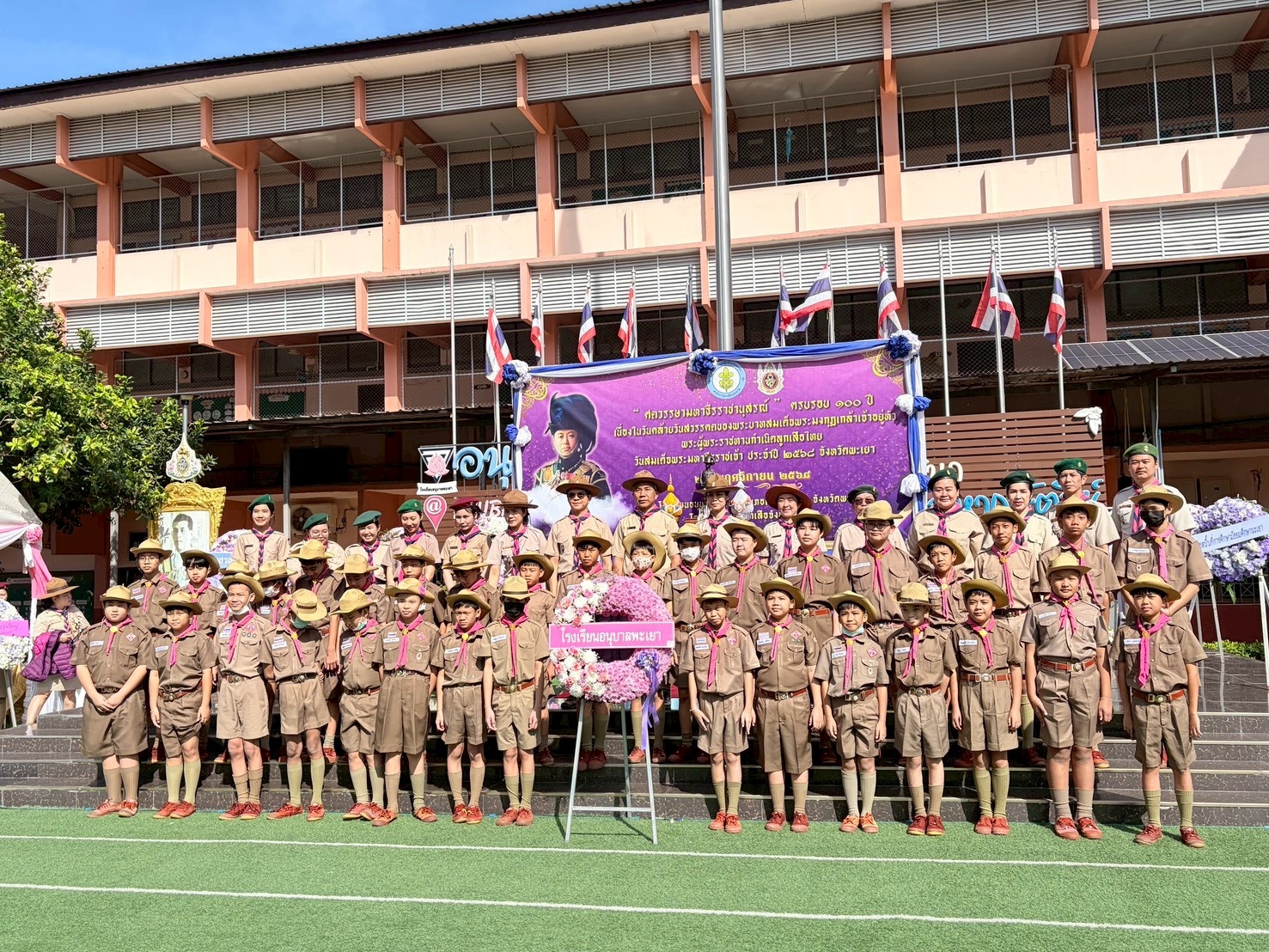 วันอังคาร ที่ ๒๕ พฤศจิกายน ๒๕๖๘ ดร.ธงชัย คำปวง ผู้อำนวยการสำนักงานเขตพื้นที่การศึกษาประถมศึกษาพะเยา เขต ๑ ปฏิบัติหน้าที่หัวหน้าสำนักงานลูกเสือจังหวัดพะเยา พร้อมด้วย นายสุวัฒน์ โยปัญญา รองผู้อำนวยการสำนักงานเขตพื้นที่การศึกษาประถมศึกษาพะเยา เขต ๑ เข้าร่วมโครงการ “ศตวรรษามหาธีรราชานุสรณ์” ครบรอบ ๑๐๐ ปี เนื่องในวันคล้ายวันสวรรคตของพระบาทสมเด็จพระมงกุฎเกล้าเจ้าอยู่หัว พระผู้พระราชทานกำเนิดลูกเสือไทย และจัดแสดงนิทรรศการเฉลิมพระเกียรติ “ฉัฐราชสดุดีประทรรศนียการ” (นิทรรศการเฉลิมพระเกียรติพระบาทสมเด็จพระมงกุฎเกล้าเจ้าอยู่หัว) ณ โรงเรียนอนุบาลพะเยา อำเภอเมืองพะเยา จังหวัดพะเยา
