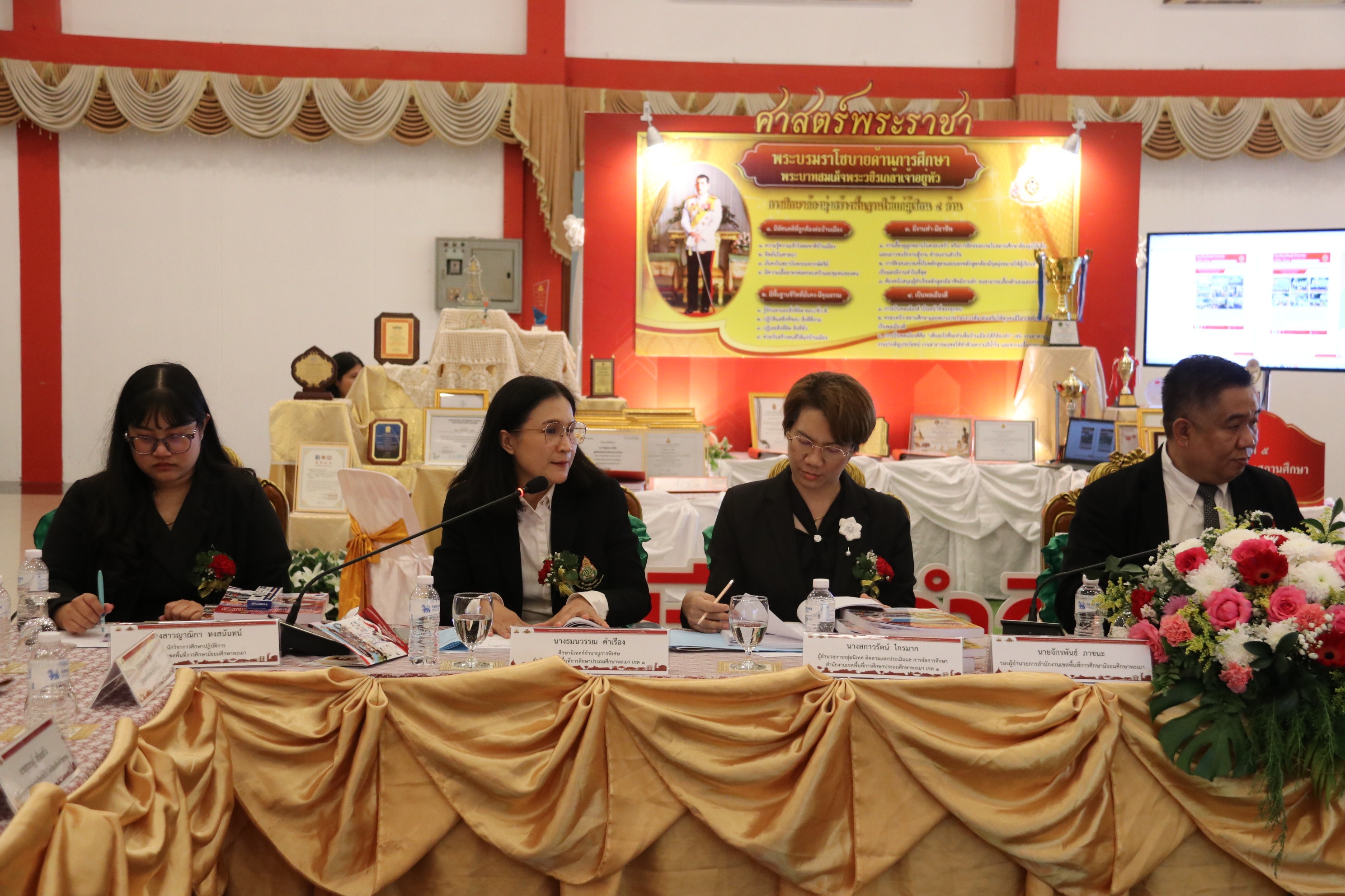 วันจันทร์ ที่ ๘ ธันวาคม ๒๕๖๘ ดร.ธงชัย คำปวง ผู้อำนวยการสำนักงานเขตพื้นที่การศึกษาประถมศึกษาพะเยา เขต ๑ มอบหมายให้ นายสุวัฒน์ โยปัญญา รองผู้อำนวยการสำนักงานเขตพื้นที่การศึกษาประถมศึกษาพะเยา เขต ๑ , นางธมนวรรณ คำเรือง ศึกษานิเทศก์ชำนาญการพิเศษ , นางสาวคริษฐา เผ่าปินตา ศึกษานิเทศก์ชำนาญการพิเศษ ร่วมเป็นคณะกรรมการคัดเลือกนักเรียนและสถานศึกษา เพื่อรับรางวัลพระราชทานและสถานศึกษา ประจำปีการศึกษา ๒๕๖๘ ระดับจังหวัดพะเยา ณ โรงเรียนเชียงคำวิทยาคม อำเภอเชียงคำ จังหวัดพะเยา