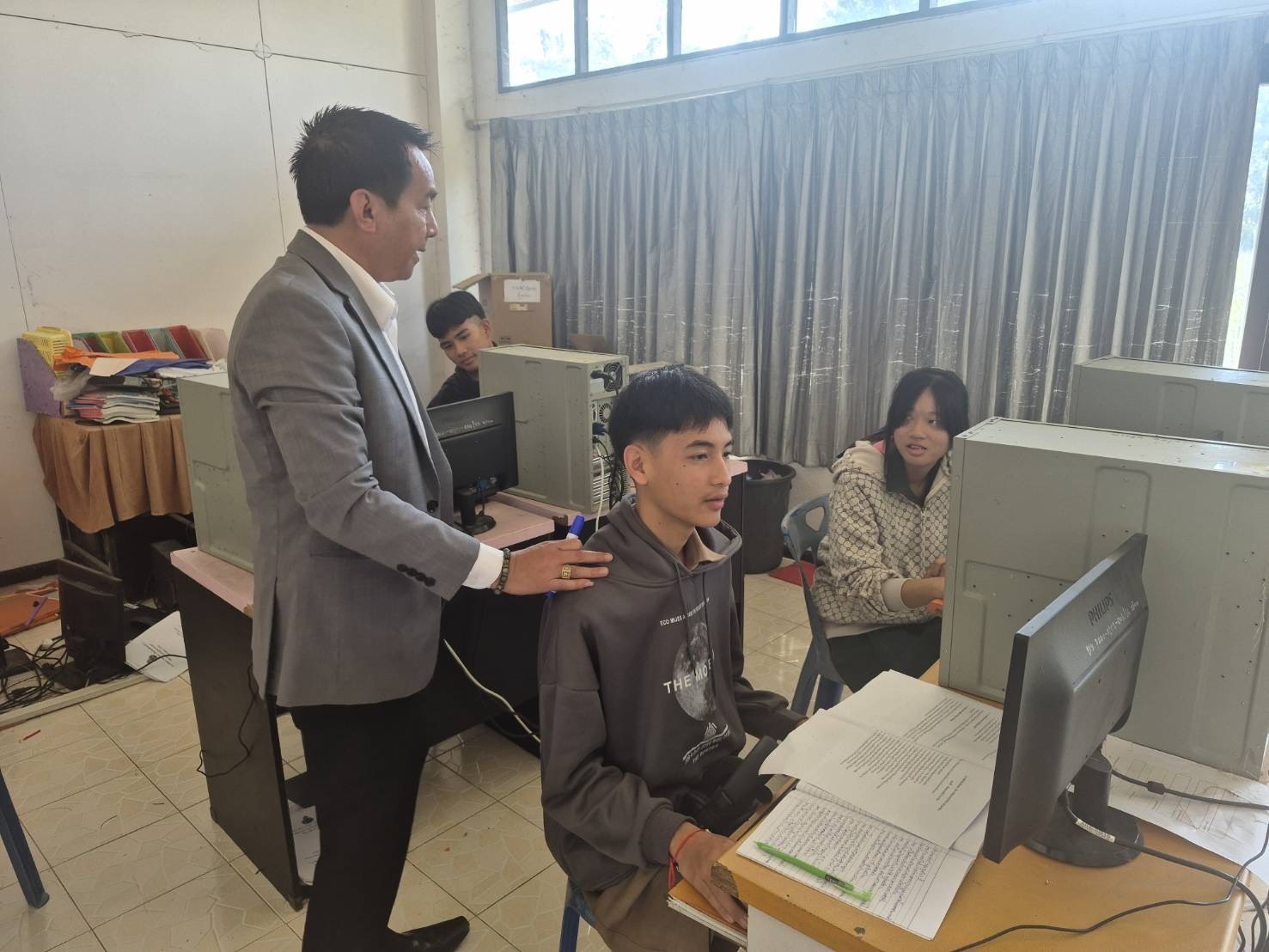 วันพุธ ที่ ๒๑ มกราคม ๒๕๖๙ ดร.ธงชัย คำปวง ผู้อำนวยการสำนักงานเขตพื้นที่การศึกษาประถมศึกษาพะเยา เขต ๑ มอบหมายให้ นายสุภัทร์ เขียนโพธิ์ รองผู้อำนวยการสำนักงานเขตพื้นที่การศึกษาประถมศึกษาพะเยา เขต ๑ นิเทศติดตามและให้กำลังใจ การเตรียมความพร้อมการทดสอบระบบ O-Net Digital สำหรับนักเรียนชั้นมัธยมศึกษาปีที่ ๓ ได้แก่ โรงเรียนชุมชนบ้านแม่ใส โรงเรียนบ้านต๊ำพระแล โรงเรียนบ้านห้วยบง โรงเรียนบ้านภูเงิน โรงเรียนบ้านร่องห้า และโรงเรียนขยายโอกาส อำเภอแม่ใจ สังกัดสำนักงานเขตพื้นที่การศึกษาประถมศึกษาพะเยา เขต ๑
