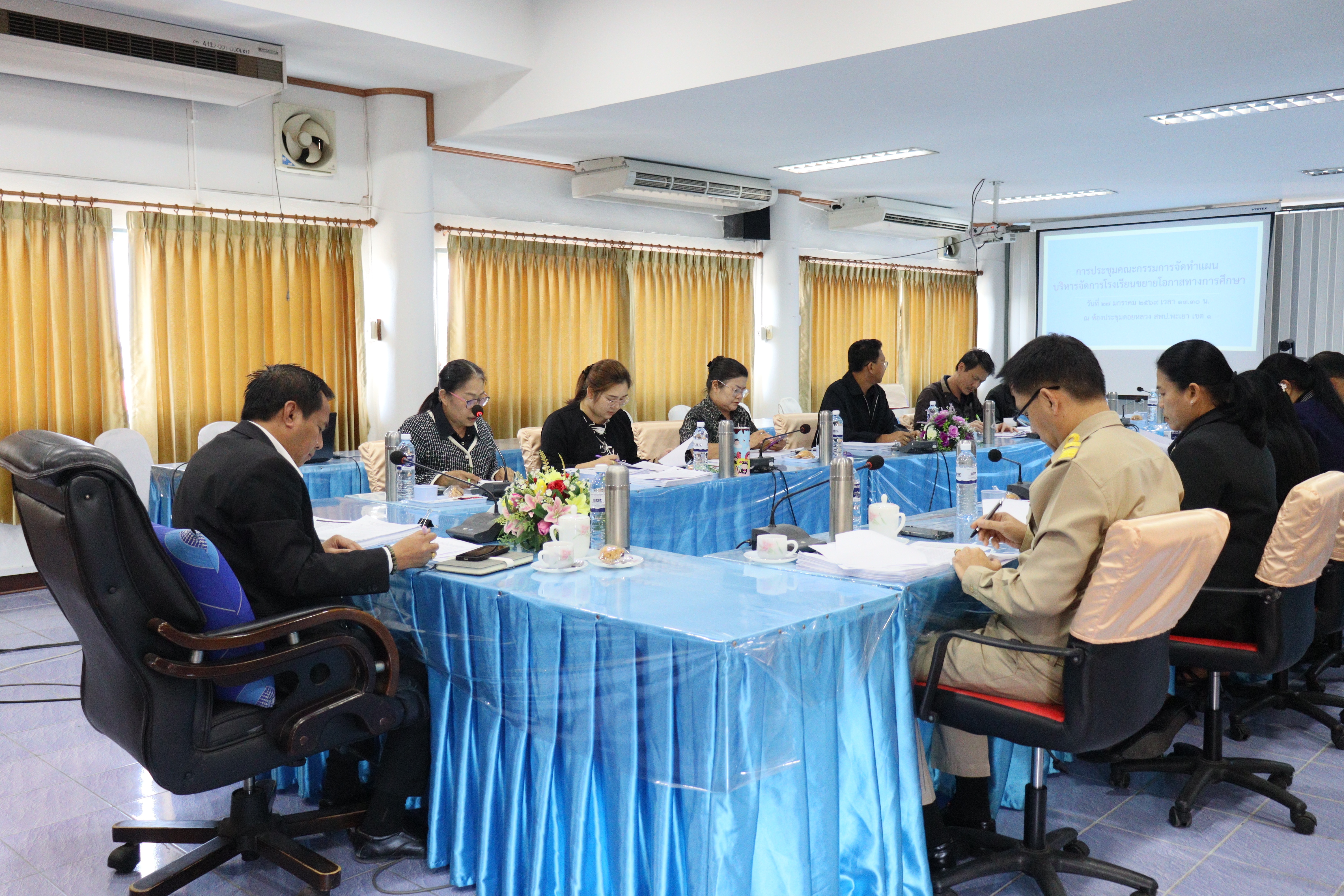 วันอังคาร ที่ ๒๗ มกราคม ๒๕๖๙ ดร.ธงชัย คำปวง ผู้อำนวยการสำนักงานเขตพื้นที่การศึกษาประถมศึกษาพะเยา เขต ๑ มอบหมายให้ นายสุภัทร์ เขียนโพธิ์ รองผู้อำนวยการสำนักงานเขตพื้นที่การศึกษาประถมศึกษาพะเยา เขต ๑ เป็นประธานการประชุมคณะกรรมการจัดทำแผนบริหารจัดการโรงเรียนขยายโอกาสทางการศึกษา พร้อมด้วย นายวาที สมศรี รองผู้อำนวยการสำนักงานเขตพื้นที่การศึกษาประถมศึกษาพะเยา เขต ๑ , ผู้อำนวยการกลุ่ม/หน่วย และเจ้าหน้าที่ที่เกี่ยวข้อง เพื่อเตรียมความพร้อมสำหรับการจัดทำแผนยกระดับคุณภาพและบริหารจัดการโรงเรียนขยายโอกาส ณ ห้องประชุมดอยหลวง สำนักงานเขตพื้นที่การศึกษาประถมศึกษาพะเยา เขต ๑