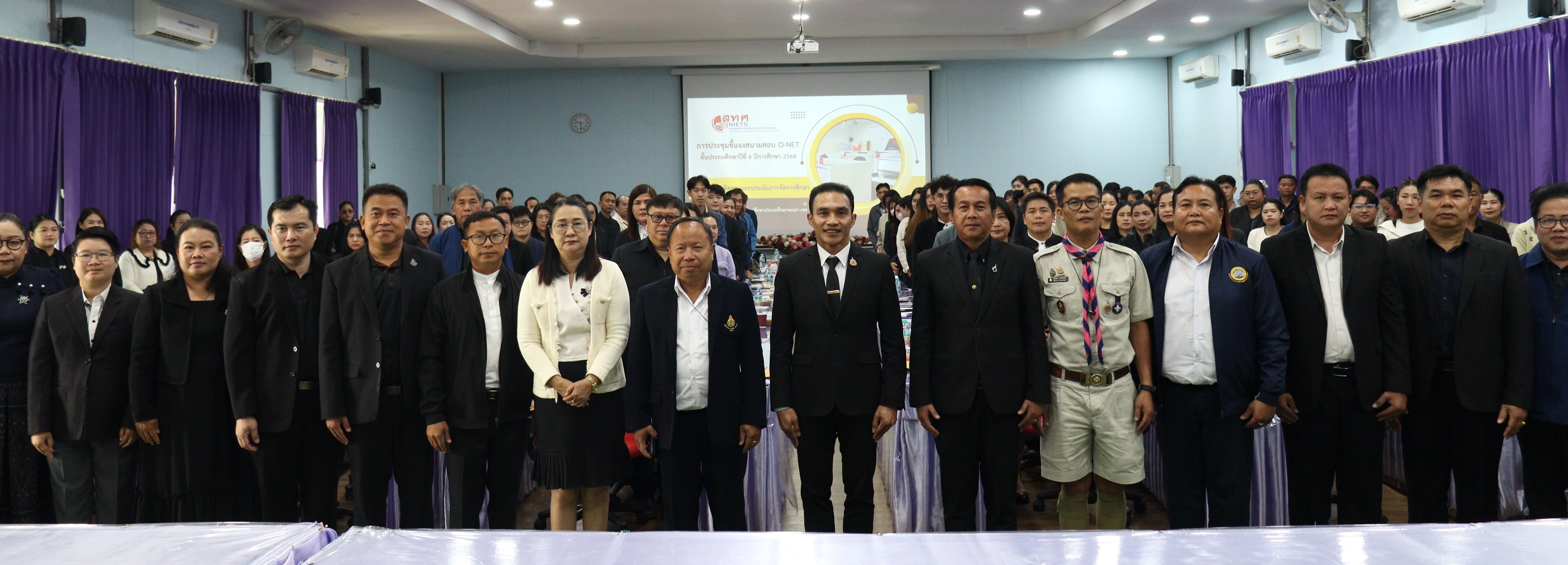 วันพุธ ที่ ๒๘ มกราคม ๒๕๖๙ เวลา ๙.๐๐ น. ดร.ธงชัย คำปวง ผู้อำนวยการสำนักงานเขตพื้นที่การศึกษาประถมศึกษาพะเยา เขต ๑ เป็นประธานการประชุมชี้แจงสนามสอบ O-NET ชั้นประถมศึกษาปีที่ ๖ ด้วยระบบดิจิทัล (Digital Testing) ปีการศึกษา ๒๕๖๘ เพื่อเสริมสร้างความเข้าใจแก่หัวหน้าสนามสอบ ตัวแทนศูนย์สอบ และกรรมการกลาง และเน้นย้ำให้รักษาความโปร่งใส ความยุติธรรม เพื่อให้การทดสอบเป็นไปด้วย ความเรียบร้อย ณ หอประชุมประถมนุสรณ์ สำนักงานเขตพื้นที่การศึกษาประถมศึกษาพะเยา เขต ๑