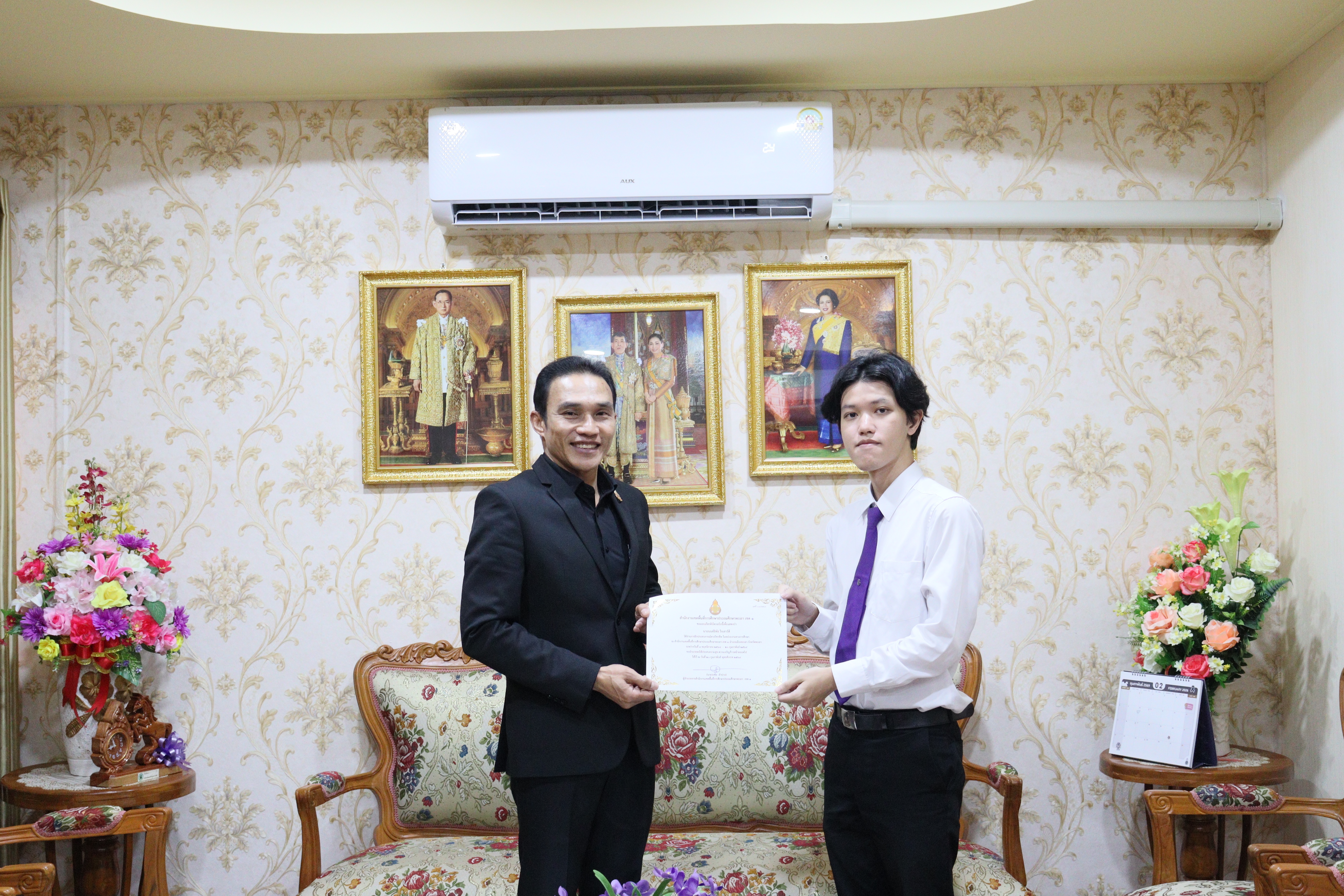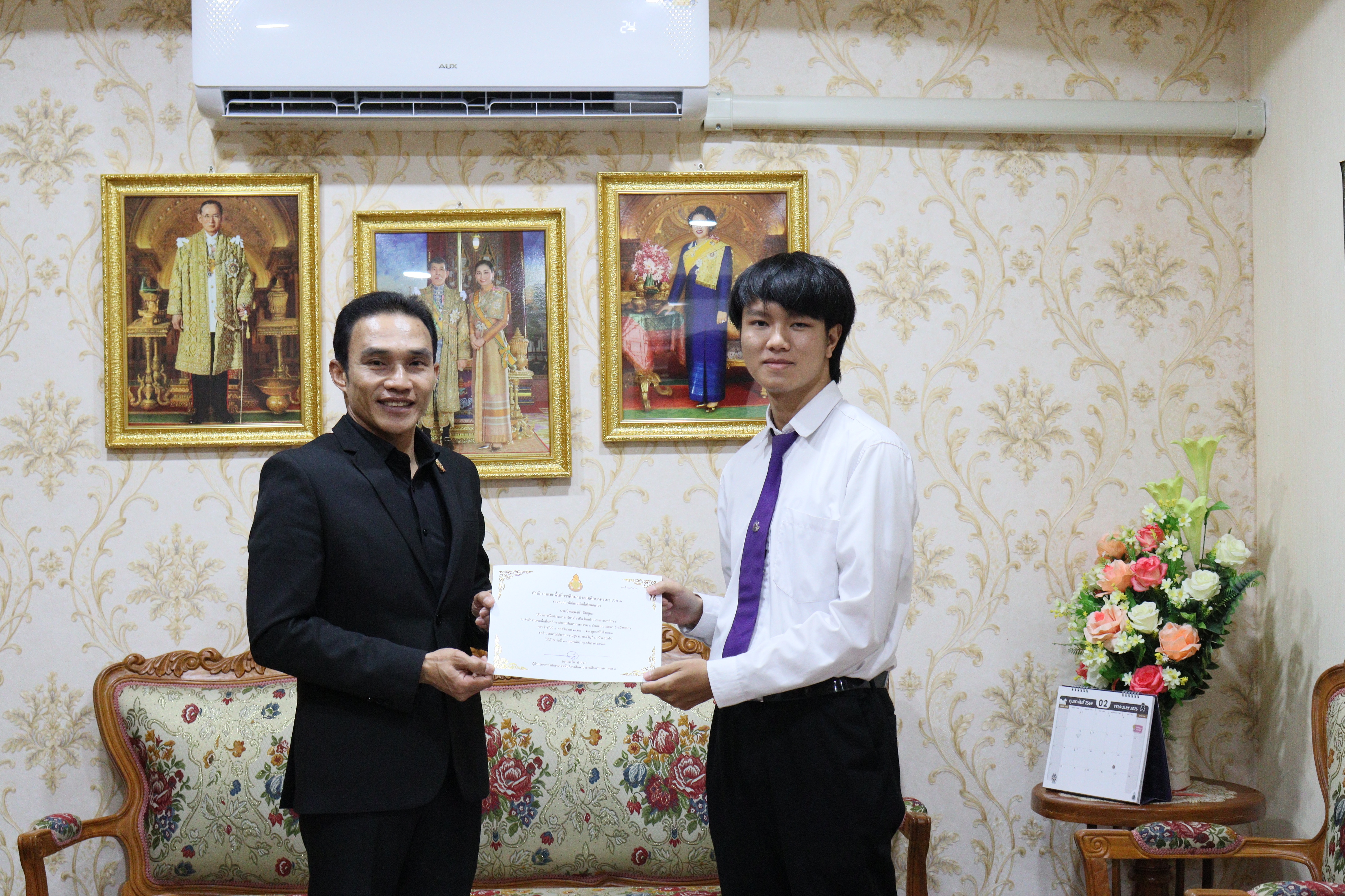 วันศุกร์ ที่ ๒๐ กุมภาพันธ์ ๒๕๖๙ ดร.ธงชัย คำปวง ผู้อำนวยการสำนักงานเขตพื้นที่การศึกษาประถมศึกษาพะเยา เขต ๑ กล่าวให้โอวาทและมอบเกียรติบัตรนิสิตฝึกงานคณะเทคโนโลยีสารสนเทศและการสื่อสาร มหาวิทยาลัยพะเยา สาขาวิชาวิศวกรรมคอมพิวเตอร์ จำนวน ๒ ราย ดังนี้ ๑.นายนนท์ธิพัธ ใจเสาร์ดี ๒.นายชิษณุพงษ์ สินธุยะ และสาขาวิชาเทคโนโลยีสารสนเทศ จำนวน ๒ ราย ดังนี้ ๑.นางสาวโชติกา พรมมา ๒.นางสาวมาติกา ชุมภู ณ สำนักงานเขตพื้นที่การศึกษาประถมศึกษาพะเยา เขต ๑