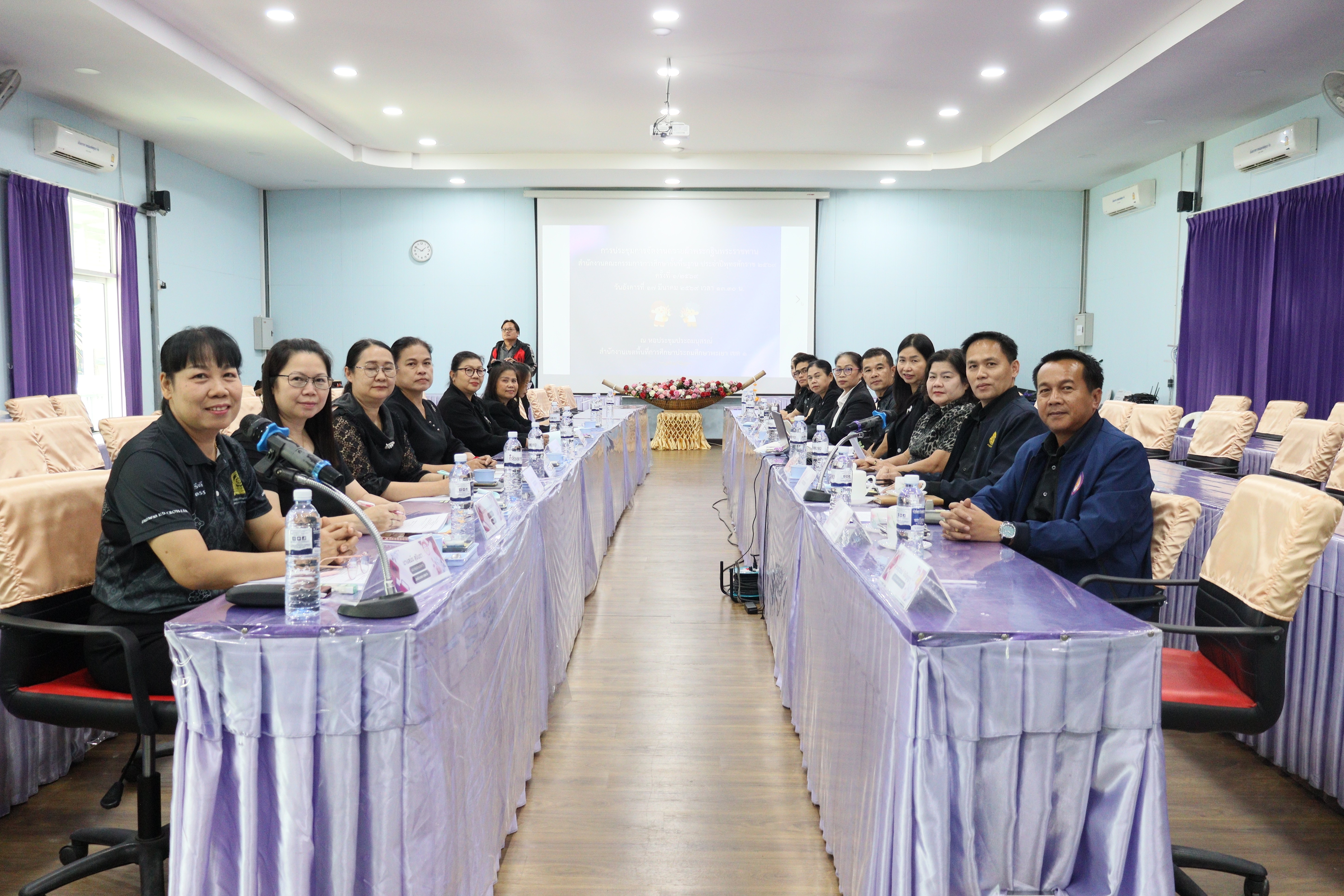 วันอังคาร ที่ ๑๗ มีนาคม ๒๕๖๙ ดร.ธงชัย คำปวง ผู้อำนวยการสำนักงานเขตพื้นที่การศึกษาประถมศึกษาพะเยา เขต ๑ เป็นประธานเปิดการประชุมการจัดเตรียมความพร้อมการถวายผ้าพระกฐินพระราชทาน สำนักงานคณะกรรมการการศึกษาขั้นพื้นฐาน ประจำปีพุทธศักราช ๒๕๖๙ ครั้งที่ ๑/๒๕๖๙ พร้อมด้วย นายสุภัทร์ เขียนโพธิ์ , นายวาที สมศรี รองผู้อำนวยการสำนักงานเขตพื้นที่การศึกษาประถมศึกษาพะเยา เขต ๑ ผู้อำนวยการกลุ่ม/หน่วย และเจ้าหน้าที่ที่เกี่ยวข้อง ณ หอประชุมประถมนุสรณ์ สำนักงานเขตพื้นที่การศึกษาประถมศึกษาพะเยา เขต ๑
