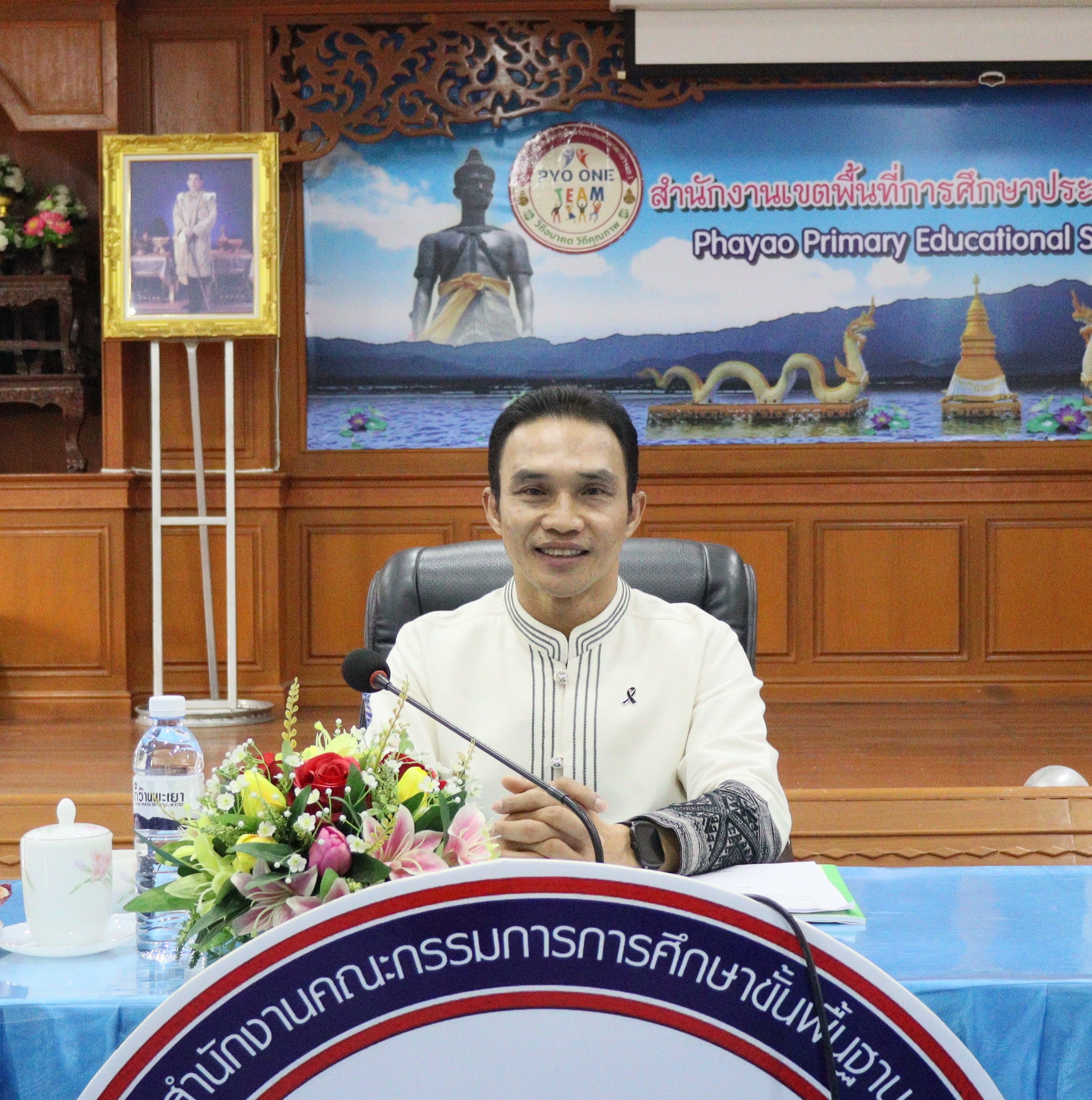 วันศุกร์ ที่ ๑๗ เมษายน ๒๕๖๙ ดร.ธงชัย คำปวง ผู้อำนวยการสำนักงานเขตพื้นที่การศึกษาประถมศึกษาพะเยา เขต ๑ เป็นประธานการประชุมคณะกรรมการเพื่อพิจารณากำหนดตำแหน่งเพื่อบริหารอัตรากำลังข้าราชการครูและบุคลากรทางการศึกษาในสังกัดสำนักงานเขตพื้นที่การศึกษาประถมศึกษาพะเยา เขต ๑ ครั้งที่ ๑/๒๕๖๙ พร้อมด้วย นายสุวัฒน์ โยปัญญา , นายสุภัทร์ เขียนโพธิ์ , นายวาที สมศรี รองผู้อำนวยการสำนักงานเขตพื้นที่การศึกษาประถมศึกษาพะเยา เขต ๑ , นางบัวลอง หอมยา ผู้อำนวยการกลุ่มบริหารงานบุคคล และคณะกรรมการพิจารณากำหนดตำแหน่งฯ ณ ห้องประชุมดอยหลวง สำนักงานเขตพื้นที่การศึกษาประถมศึกษาพะเยา เขต ๑