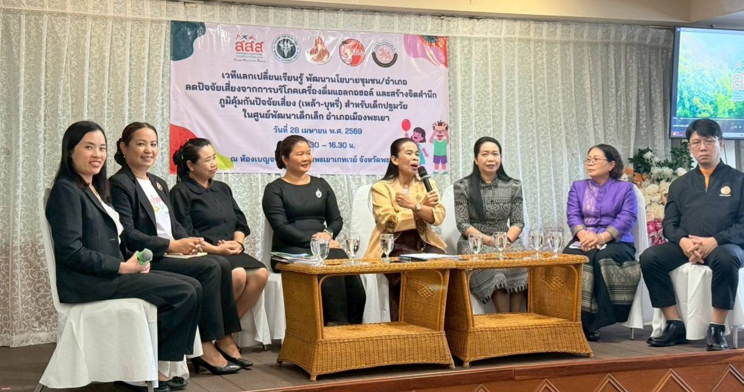 วันอังคารที่ ๒๘ เมษายน ๒๕๖๙ ดร.ธงชัย คำปวง ผู้อำนวยการสำนักงานเขตพื้นที่การศึกษาประถมศึกษาพะเยา เขต ๑ มอบหมายให้ นายสุวัฒน์ โยปัญญา รองผู้อำนวยการสำนักงานเขตพื้นที่การศึกษาประถมศึกษาพะเยา เขต ๑ และนางสาวประภาพัฒน์ เพ็ชรรัตน์บำรุง ศึกษานิเทศก์ เข้าร่วมงานกิจกรรมเวทีแลกเปลี่ยนเรียนรู้และพัฒนานโยบายชุมชน/อำเภอ ลดปัจจัยเสี่ยงจากการบริโภคเครื่องดื่มแอลกอฮอล์ และสร้างจิตสำนึกภูมิคุ้มกันปัจจัยเสี่ยง (เหล้า บุหรี่) สำหรับเด็กปฐมวัยในศูนย์พัฒนาเด็กเล็ก อำเภอเมืองพะเยา จังหวัดพะเยา โดยความร่วมมือประชาคมงดเหล้าจังหวัดพะเยา ร่วมกับ สำนักงานเขตพื้นที่การศึกษาประถมศึกษาพะเยา เขต ๑ และคณะกรรมการพัฒนาคุณภาพชีวิตระดับอำเภอเมืองพะเยา (พชอ.) ภายใต้การสนับสนุนจากกองทุนสนับสนุนการสร้างเสริมสุขภาพ (สสส.) โดยมี นายสมชาย วงศ์จริยะเกษม นายอำเภอเมืองพะเยา เป็นประธานพิธีเปิดงานดังกล่าว ณ โรงแรมเกทเวย์ อำเภอเมืองพะเยา จังหวัดพะเยา